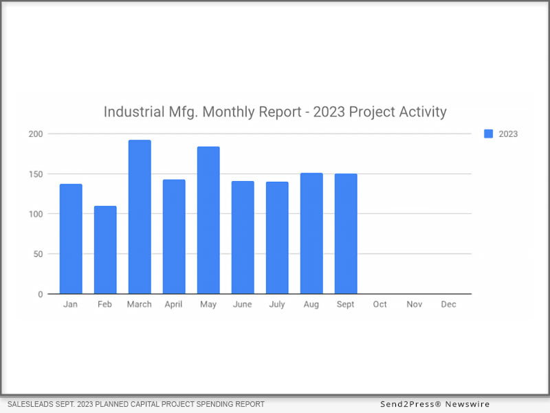 JACKSONVILLE BEACH, Fla. /ScoopCloud/ — SalesLeads announced today the September 2023 results for the new planned capital project spending report for the Industrial Manufacturing industry. The Firm tracks North American planned industrial capital project activity; including facility expansions, new plant construction and significant equipment modernization projects. Research confirms 150 new projects in September as compared to 151 in August and 140 in July.