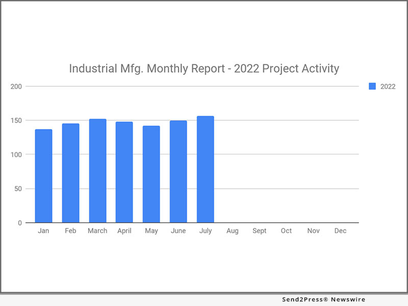JACKSONVILLE BEACH, Fla. /ScoopCloud/ — Industrial SalesLeads announced today the July 2022 results for new planned capital project spending report for the Industrial Manufacturing industry. The Firm tracks North American planned industrial capital project activity; including facility expansions, new plant construction and significant equipment modernization projects. Research confirms 156 new projects with Texas leading the top locations for July.