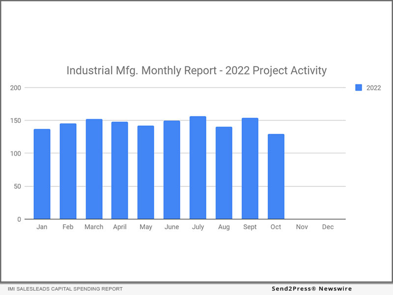 JACKSONVILLE BEACH, Fla. /ScoopCloud/ — IMI SalesLeads announced today the September 2022 results for the new planned capital project spending report for the Industrial Manufacturing industry. The 154 new projects increased from August 2022 140 manufacturing projects, however, down from 162 in September 2021.