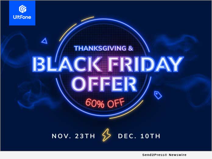 NEW YORK, N.Y. /ScoopCloud/ — UltFone has proudly announced that it has launched exciting new giveaways for Thanksgiving and Black Friday. UltFone has prepared Thanksgiving and Black Friday gifts for everyone. There are 3 parts, get the free one month license for UltFone Windows data recovery, $9.95 special offer for new product and exclusive coupon code. The event will end on December 16, 2020, so take the opportunity!