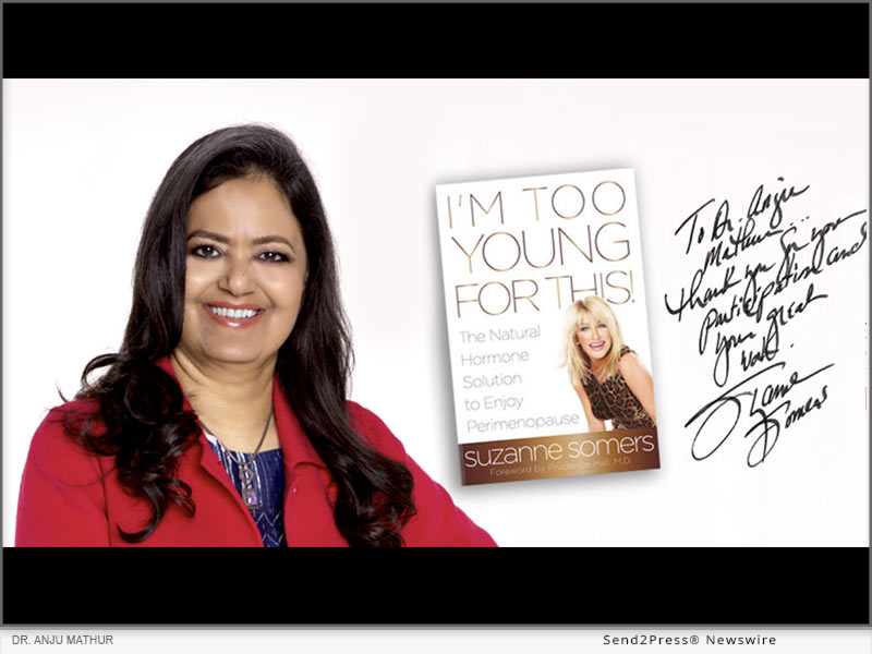 STUDIO CITY, Calif., Oct. 2, 2024 (SEND2PRESS NEWSWIRE) — Functional medicine doctor, Dr. Anju Mathur M.D., is honoring the legacy of Suzanne Somers on the anniversary of her passing during World Menopause Awareness Month 2024 in October. Dr. Mathur, founder and medical director of Angel Longevity Medical Center, was first featured in 2014 in Somers’ New York Times best seller, “I’m Too Young for This!: The Natural Hormone Solution to Enjoy Perimenopause.” [UPDATED]