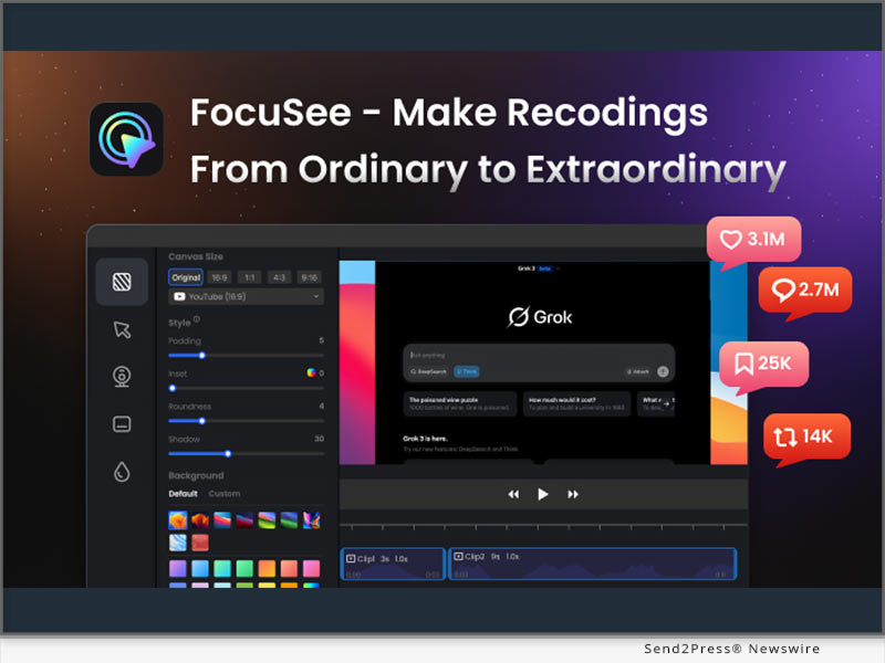 LOS ANGELES, Calif., March 28, 2025 (SEND2PRESS NEWSWIRE) — FocuSee, an AI-powered screen recorder with auto-editing, has taken center stage after Elon Musk shared a video recorded with it on X (formerly Twitter). The viral post has amassed millions of views and sparked widespread discussions, positioning FocuSee as an essential tool for creators looking to effortlessly create demo or tutorial videos that stand out.