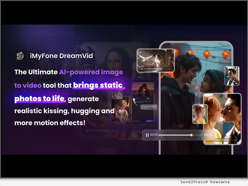 NEW YORK, N.Y., and GUANGDONG, China, Sept. 30, 2025 (SEND2PRESS NEWSWIRE) — One of the biggest challenges in a long-distance relationship is keeping things fresh. Calls and video chats are great, but they can’t replace a hug or a kiss. As a leader in AI video generation, iMyFone DreamVid – AI Image to Video Generator offers long-distance couples a whole new, fun way to connect.