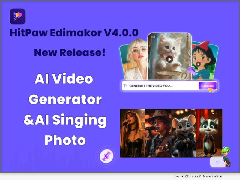 NEW YORK CITY, N.Y., May 24, 2025 (SEND2PRESS NEWSWIRE) — HitPaw Edimakor, known for its work in smart video editing tools, has announced the official launch of Edimakor V4.0.0. This new version introduces a fresh set of features, including a singing avatar tool, expanded image-to-video templates, upgraded text-to-video capabilities, and more control over background removal. These updates are designed to give users more flexibility and options when building creative content from images, text, and audio.