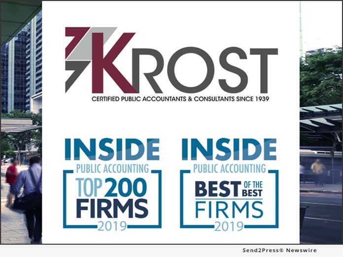 PASADENA, Calif. /ScoopCloud/ — Inside Public Accounting (IPA) named KROST CPAs & Consultants and its affiliated tax consulting practice Best of the Best and Top 200 Firms for the fourth year in a row. The firm placed 109th on the prestigious top 200 list, a substantial leap from 157th in 2016 when it first made the rankings.