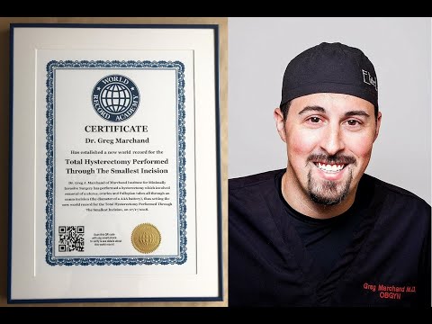 MESA, Ariz. /ScoopCloud/ — The World Record Academy today Awarded Dr. Greg J. Marchand, of Marchand Institute for Minimally Invasive Surgery, a world record for performing hysterectomy through the smallest incision ever. The surgery involved removal of a uterus, ovaries and Fallopian tubes all through an incision the diameter of an AAA battery.
