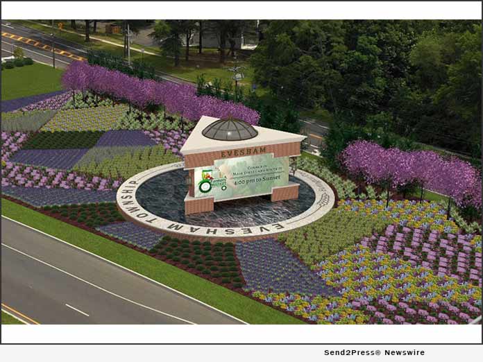 EVESHAM, N.J. /ScoopCloud/ — Drive down almost any suburban highway, and you will be greeted by a sea of sameness. McDonald’s, Dunkin Donuts, Wells Fargo, Target, etc. You could be anywhere. But soon, when you drive into or fly over Evesham Township, however, you will be greeted by an embodiment of the township seal. Catalyst Experiential and Evesham Township worked together on the design.