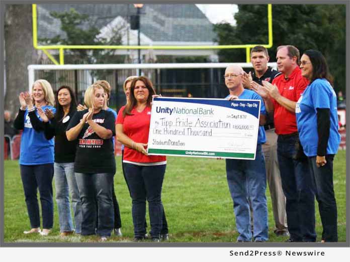 TIPP CITY, Ohio /ScoopCloud/ — The Tipp Pride Association Board of Directors announced today that the organization has received a $100,000 sponsorship from Unity National Bank for the construction of Tipp City’s new community stadium. The generous gift will lead ongoing fundraising to support stadium construction.