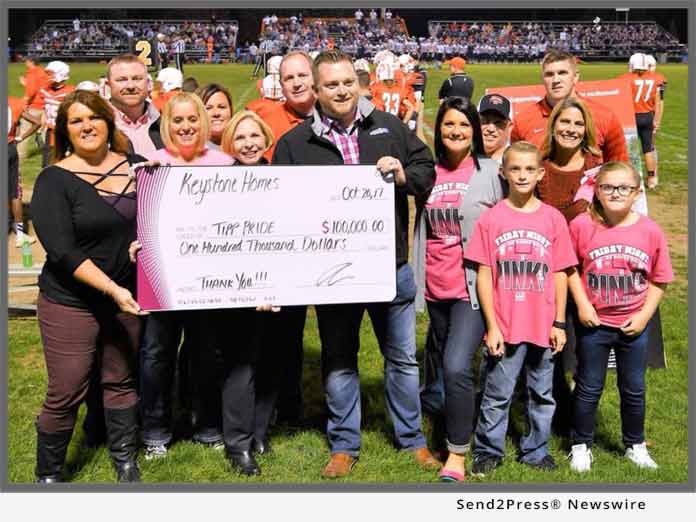 TIPP CITY, Ohio /ScoopCloud/ — The Tipp Pride Association Board of Directors announced today that the organization has received a $100,000 sponsorship from Keystone Homes of Troy, Ohio for the construction of Tipp City’s new community stadium. The generous gift will lead ongoing fundraising to support stadium construction.