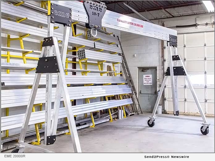 FORT ERIE, Ontario /ScoopCloud/ — Easily Moved Equipment (eme) is excited to announce yet another world’s first with the launch of the eme 20000R 10 Ton portable aluminum Gantry Crane. The eme 20000R is in a class by itself as the world’s first portable aluminum Gantry Crane that can be moved under rated lifting capacity of 10 Tons.