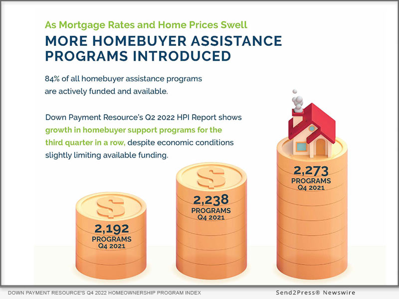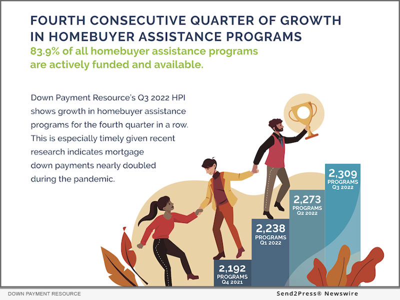 ATLANTA, Ga. /ScoopCloud/ — Down Payment Resource (DPR), a technology provider helping the housing industry connect homebuyers with homebuyer assistance programs, today announced findings from its latest Homeownership Program Index (HPI). The firm’s analysis of 2,309 homebuyer assistance programs in its DOWN PAYMENT RESOURCE® database revealed that the net number of homebuyer assistance programs increased by 1.6% from Q2 to Q3 2022.