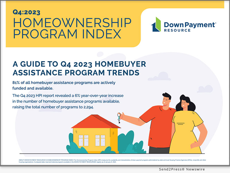 ATLANTA, Ga. /ScoopCloud/ — Down Payment Resource (DPR), the housing industry authority on homebuyer assistance program data and solutions, today released its Q4 2023 Homeownership Program Index (HPI) report. During a year when home affordability hit a nearly four-decade low, housing agencies introduced 135 homebuyer assistance programs and expanded eligible inventory to make homeownership more accessible.
