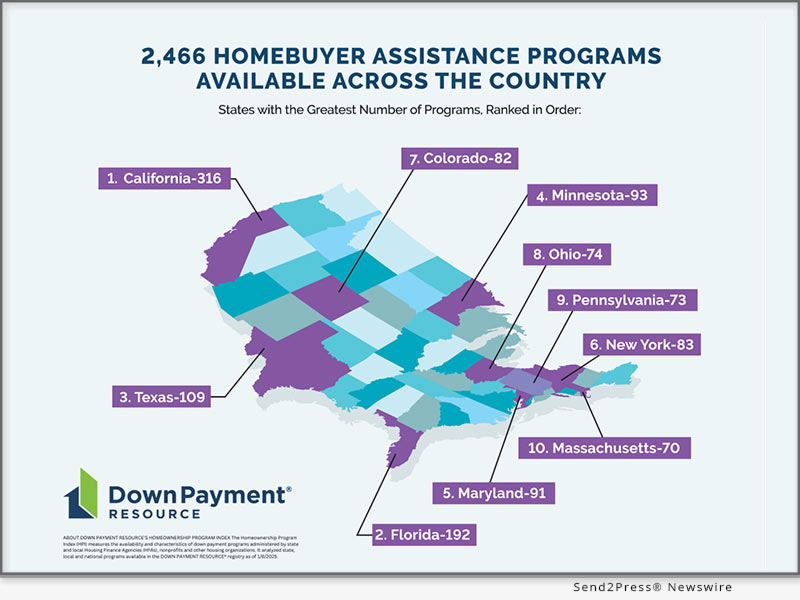 ATLANTA, Ga., July 29, 2025 (SEND2PRESS NEWSWIRE) — Down Payment Resource (DPR), the housing industry authority on homebuyer assistance program data and solutions, today released its Q2 2025 Homeownership Program Index (HPI) report. The report finds 45 new programs launched in Q2, traditionally the busiest homebuying season, bringing the total number of available programs to 2,554 – a new record – and the number of program providers to 1,340.