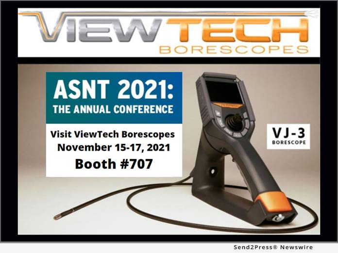 TRAVERSE City, Mich. /ScoopCloud/ — For the ninth consecutive year, ViewTech Borescopes continues to exhibit their line of video borescopes at The American Society for Nondestructive Testing (ASNT) Annual Conference. With the 2021 ASNT Annual Conference taking place in Phoenix, Arizona at the Phoenix Convention Center, ViewTech will be exhibiting at booth 707 from November 15 – 17, 2021.