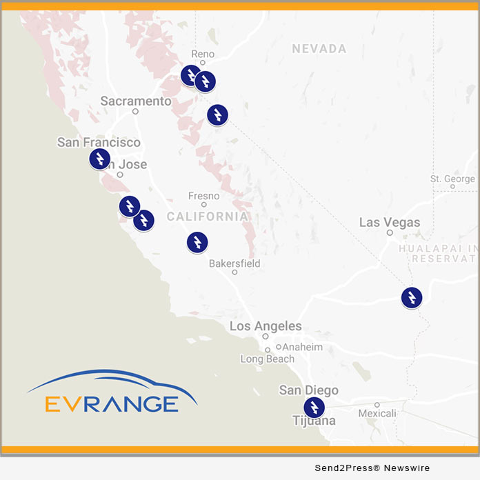 SAN PEDRO, Calif. /ScoopCloud/ — EV Range Inc., an EV Charging Network based in San Pedro, CA, is in the process of deploying a total of 26 high-powered (180-350kW) electric vehicle (EV) charging stations across 9 sites throughout California and Nevada in 2022.