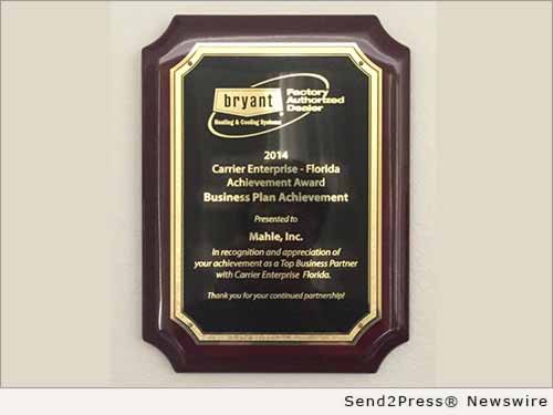 VENICE, Fla., Sept. 16, 2015 (SEND2PRESS NEWSWIRE) — Mahle Cool Air and Heating of Venice, a Bryant Factory Authorized Dealer, received Carrier Enterprise’s 2014 Enterprise Award for Business Plan Achievement.