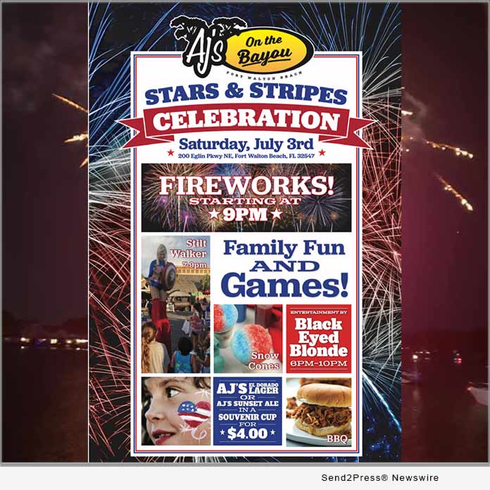 FORT WALTON BEACH, Fla. /ScoopCloud/ — The folks at AJ’s Seafood and Oyster Bar know that there’s no better way to kick off the summer than with a live firework show along Florida’s Emerald Coast. That’s why it’s excited to host a free firework show at AJ’s on the Bayou, one of its four popular locations.