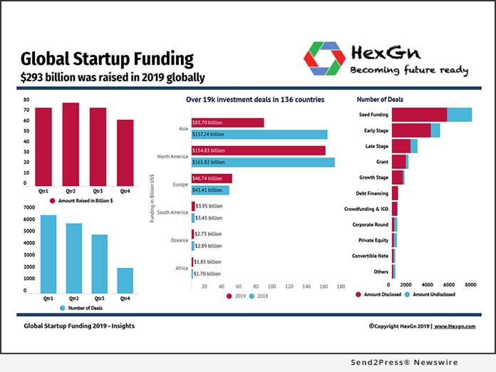 NEW YORK, N.Y. /ScoopCloud/ — HexGn released a study of the funding trends in the global startup ecosystem in 2019; the team analyzed over 60,000 deals and one million data points for the report.
