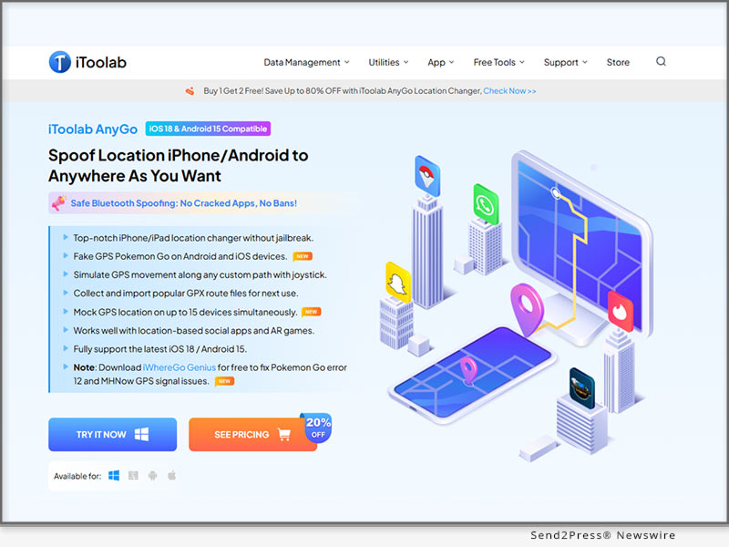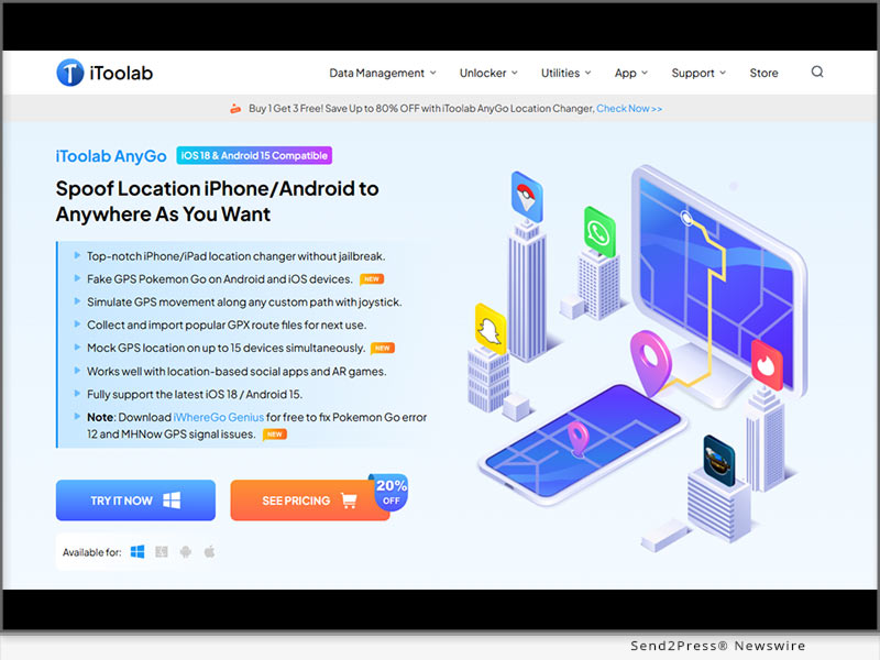 NEW YORK, N.Y., Dec. 10, 2025 (SEND2PRESS NEWSWIRE) — iToolab, a leading provider of innovative software solutions for iOS, Android, and Windows systems, today announces its Christmas Holiday Sale running from Dec. 10 to Jan. 16. During the Christmas sale period, users worldwide can enjoy discounts up to 80% on all tools, including WaTracker, WatsGo, AnyGo, UnlockGo (Android), UnlockGo (iOS), RecoverGo series, and etc.
