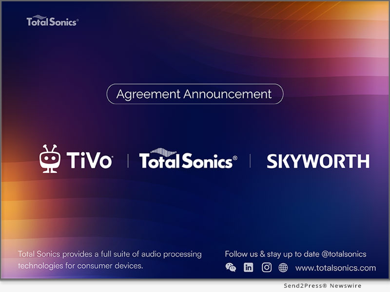 MILFORD, Mass., May 21, 2025 (SEND2PRESS NEWSWIRE) — New England-based audio technology innovator, Total Sonics®, the licensing arm of THAT Corporation®, is pleased to announce agreements with TV technology powerhouse TiVo™, a division of Xperi®, and the Skyworth® Group, one of the world’s largest TV and appliance manufacturers. The agreement with TiVo allows them to integrate and distribute the patented Total Sonics audio enhancement technology suite along with TiVo firmware.
