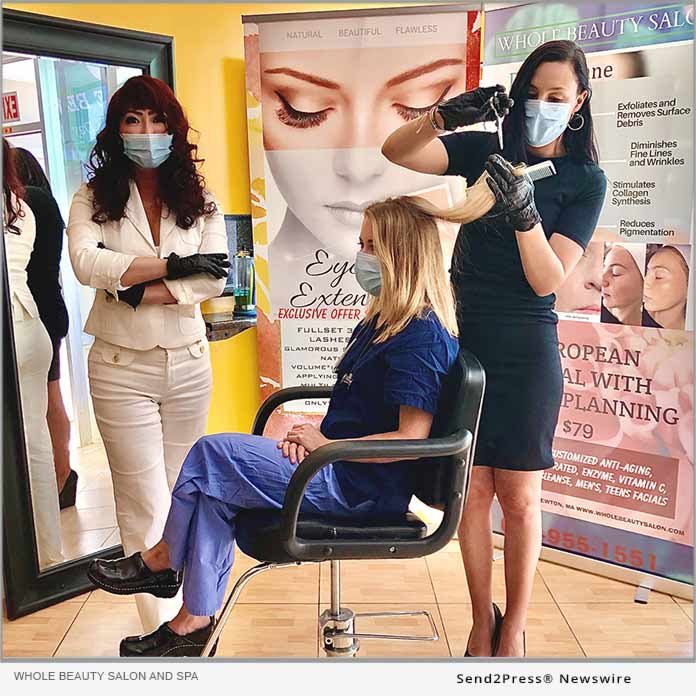 NEWTON, Mass. /ScoopCloud/ — Whole Beauty Salon and Spa of Newton, Massachusetts is donating free haircut or express facial to health care workers, policemen and firefighters for a duration of month of June 2020. Per Governor Baker’s reopening order, a haircut service will be available as early as May 25, 2020 and spa service will be available as early as June 8, 2020.