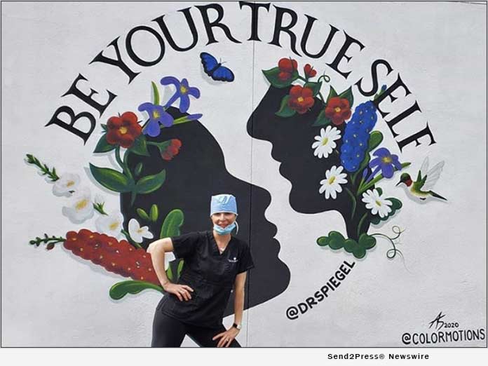 NEWTON, Mass. /ScoopCloud/ — The Spiegel Center plastic surgery office has created an outdoor waiting room as patients are asked to stay longer in their cars prior to doctor visits due to new COVID-19 regulations. An innovative plastic surgeon commissioned a talented local artist, Alicia Silvestri to create an original 100-square-foot mural to be painted in the parking lot for their patients.