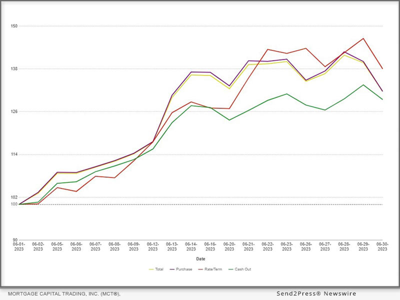 SAN DIEGO, Calif. /ScoopCloud/ — Mortgage Capital Trading, Inc. (MCT®), the leader in capital markets software and services supporting more lenders with hedging and pipeline management solutions than any other single provider, is pleased to present the MCTlive! Lock Volume Indices for May 2023. MCT Data represents a balanced cross section of several hundred lenders among retail, correspondent, wholesale, and consumer direct channels.