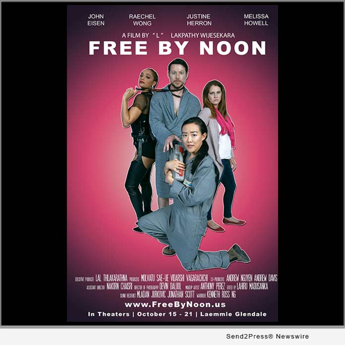 LOS ANGELES, Calif. /ScoopCloud/ — Los Angeles-based, Sri Lankan filmmaker, Lakpathy Wijesekara’s latest feature film “Free By Noon” starring John Eisen, Raechel Wong, Justine Herron and Melissa Howell will be theatrically released in Los Angeles from October 15 to October 21, 2021 at the Laemmle theater in Glendale.