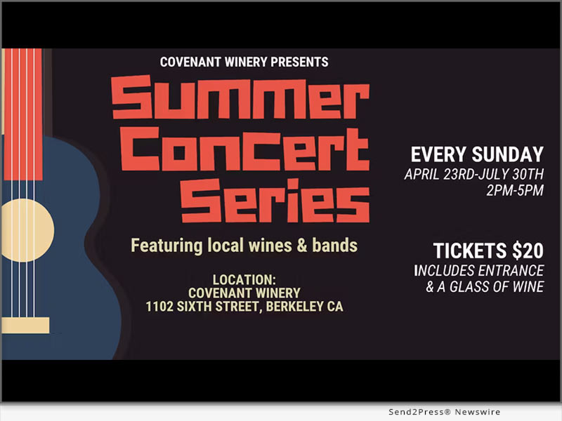 BERKELEY, Calif. /ScoopCloud/ — The Covenant Winery Summer Music Series, now in its 2nd year, will kick off at their Sixth Street Winery in Berkeley on Sunday, April 23rd, and continue through the end of July, just before harvest season starts. Showcased at the winery’s new outdoor tasting lounge, fans of wine and music can enjoy the vibe of the Berkeley Drinks District, while sipping a nice array of wines from throughout California’s diverse wine regions.
