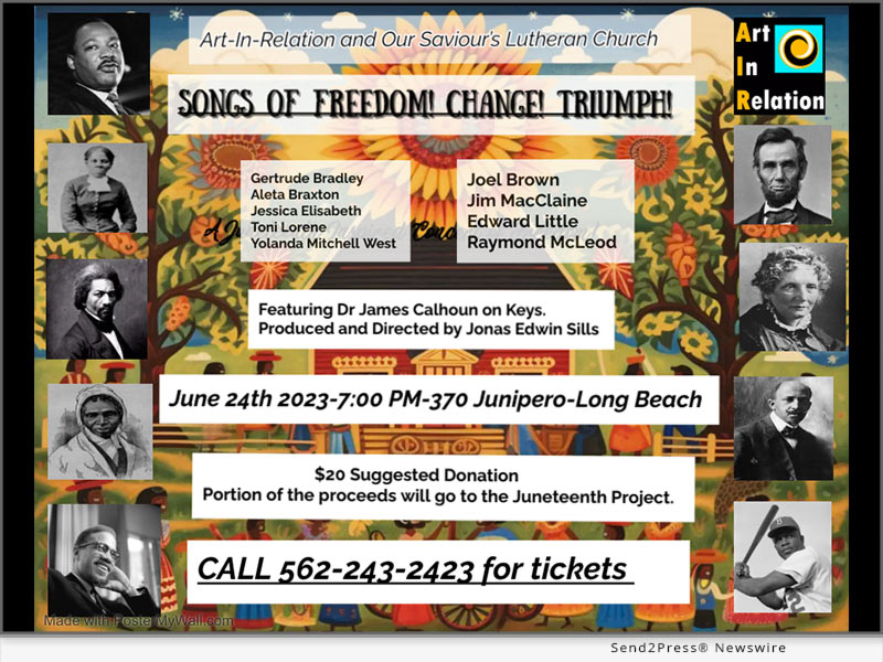 LONG BEACH, Calif. /ScoopCloud/ — Art-In-Relation (A.I.R.) is proud to present a special evening concert, in collaboration with Our Saviour’s Lutheran Church, featuring a group of exceptional performers. This talented ensemble will come together to deliver an inspiring musical experience. With a repertoire that reflects the significance of Juneteenth and embraces a message of change and freedom, this concert promises to be a memorable celebration.