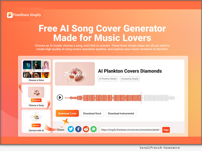 LOS ANGELES, Calif. /ScoopCloud/ — FineShare is an intelligent software company that offers innovative solutions to enhance multimedia experiences for individuals and businesses. In July, FineShare launched Online Voice Changer which is based on AI Voice Cloning technology. This month, FineShare is proud to introduce FineShare Singify, an innovative and free AI song cover generator that aims to redefine music creation and provide an unprecedented carnival for music lovers.