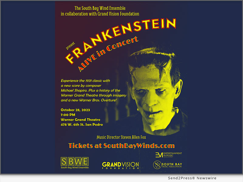 LOS ANGELES, Calif. /ScoopCloud/ — South Bay Wind Ensemble (SBWE) is thrilled to begin our 2023/2024 season with “Frankenstein: Alive in Concert” on October 28, 2023 at 7 p.m. The classic 1931 film has sound and dialog, but no music. So now, South Bay Winds are providing the music with a 2002 score by composer Michael Shapiro.