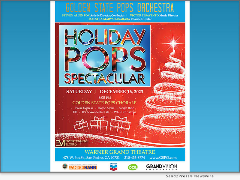 LOS ANGELES, Calif. /ScoopCloud/ — The holiday spirit will be brought to life once again with the “Holiday Pops Spectacular” taking place on Saturday, December 16, 2023, at 8 p.m., marking the final appearance at the Warner Grand Theatre in San Pedro, CA. Join Maestro Steven Allen Fox, Resident Choir Maestra Marya Basaraba, and the Golden State Pops Orchestra and Chorale in a heartwarming journey filled with joy and merriment!