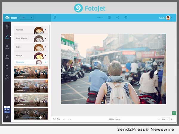 HONG KONG /ScoopCloud/ — FotoJet, a popular image processing tool developed by PearlMountain Limited, today unveiled its HTML5-based editor, a greatly improved version with new graphical user interface (GUI) that makes online photo editing easier and faster than ever for everyone.
