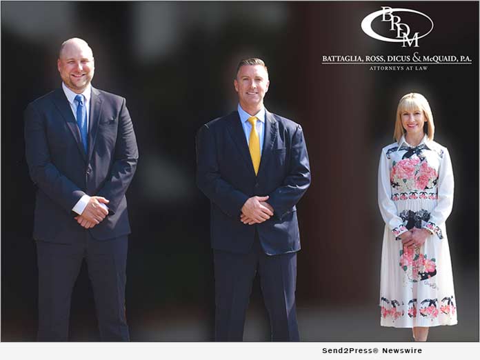 ST. PETERSBURG, Fla. /ScoopCloud/ — Battaglia, Ross, Dicus & McQuaid, P.A. is proud to announce that three of its attorneys were sworn into leadership roles of the St. Petersburg Bar Association on May 27, 2020. Sean McQuaid now becomes the 96th President of the Bar Association and Rachel Drude-Tomori and Andrew Pardun join him as members of the Executive Committee.