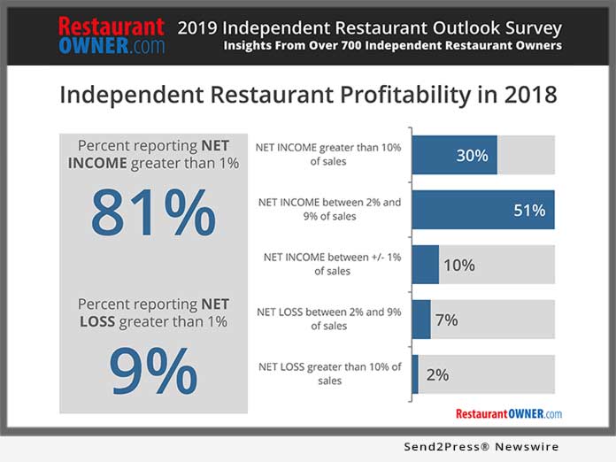 PHOENIX, Ariz. /ScoopCloud/ — RestaurantOwner.com has released the report of their 2019 Independent Restaurant Outlook Survey. This is the third consecutive Outlook Report which summarizes input gathered from over 700 independent restaurant owners and operators regarding their 2018 financial performance, as well as their optimism about 2019.
