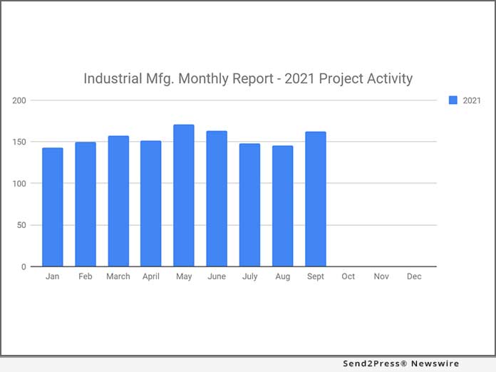 JACKSONVILLE, Fla. /ScoopCloud/ — SalesLeads announced today the September 2021 results for the new planned capital project spending report for the Industrial Manufacturing industry. The Firm tracks North American planned industrial capital project activity; including facility expansions, new plant construction and significant equipment modernization projects. Research confirms 162 new projects in the Industrial Manufacturing sector.