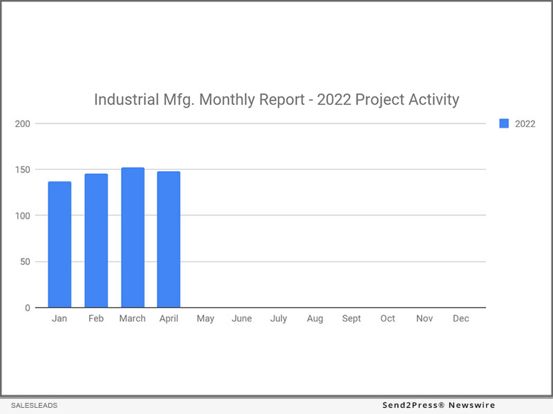 JEFFERSON BEACH, Fla. /ScoopCloud/ — SalesLeads announced today the March 2022 results for the new planned capital project spending report for the Industrial Manufacturing industry. The Firm tracks North American planned industrial capital project activity; including facility expansions, new plant construction and significant equipment modernization projects. Research confirms 152 new projects in the Industrial Manufacturing sector.