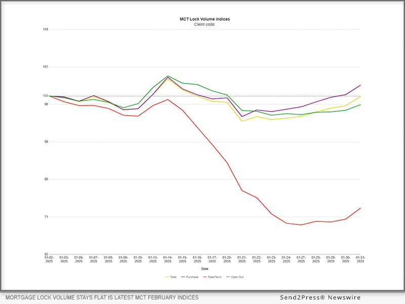 SAN DIEGO, Calif., Feb. 6, 2025 (SEND2PRESS NEWSWIRE) — Mortgage Capital Trading, Inc. (MCT®), the de facto leader in innovative mortgage capital markets technology, announced today a 0.12% decrease in mortgage lock volume compared to the previous month. Industry professionals and market enthusiasts are encouraged to download the complete report for a deeper understanding of the latest market trends and dynamics.