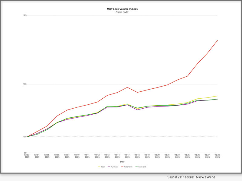 SAN DIEGO, Calif., March 11, 2025 (SEND2PRESS NEWSWIRE) — Mortgage Capital Trading, Inc. (MCT®), the de facto leader in innovative mortgage capital markets technology, today announced a 27.91% increase in mortgage lock volume compared to the previous month. Industry professionals and stakeholders are encouraged to download the full report for a detailed analysis.