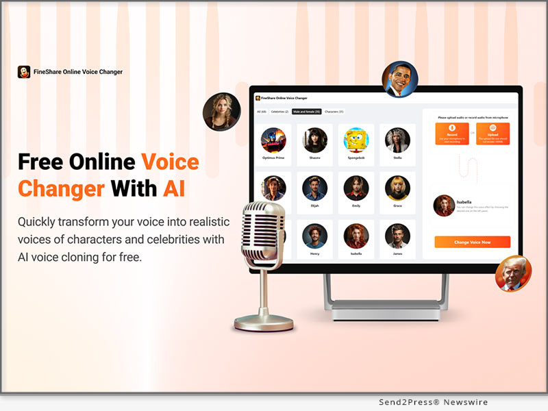LOS ANGELES, Calif. /ScoopCloud/ — FineShare, an intelligent software company dedicated to providing innovative solutions to improve real-time multimedia experiences for both individuals and business users, proudly announces the launch of its online voice changer. Leveraging AI voice cloning technology, this tool revolutionizes the online voice-changing industry, empowering content creators such as video and podcast producers to realize smart, diverse, secure, and simple voice-changing experiences.