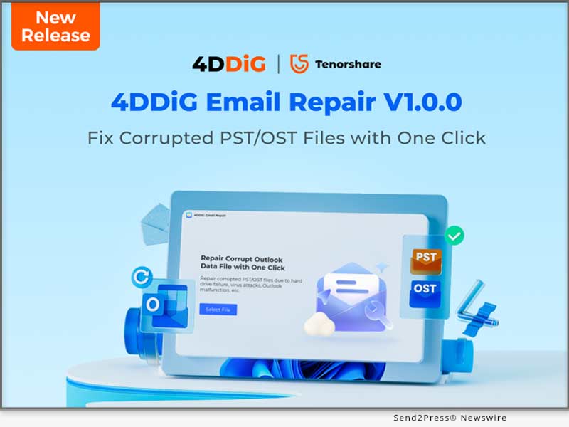 NEW YORK, N.Y. /ScoopCloud/ — 4DDiG, a leading software solutions provider (and unit of Tenorshare), is thrilled to announce the release of its latest software, 4DDiG Email Repair v1.0.0. This user-friendly tool is desgined to scan and repair corrupted PST or OST files in Outlook. Moreover, it also helps Windows users resolve many common Outlook issues, such as difficulties accessing your mailbox or encountering Outlook error messages.